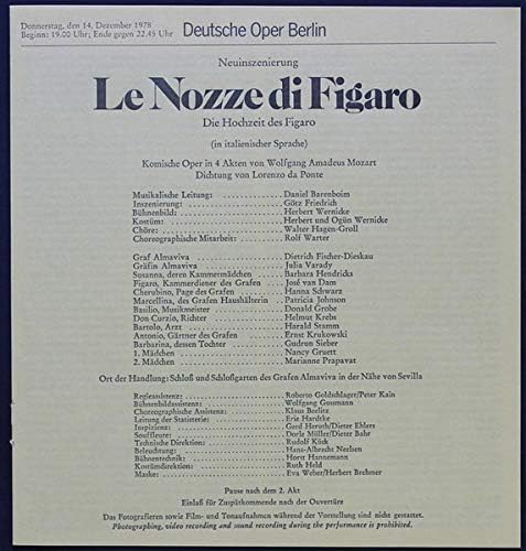 Figaro Kammerdiener des Grafen Almaviva trifft Vorbereitungen für seine Hochzeit. Figaros Hochzeit oder Die Hochzeit des Figaro knüpft als Fortsetzung an den Barbier von Sevilla an. Csampai in stereoplay 9 91Die Rarität.